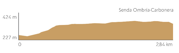 La senda de la Ombría-Carbonera és una alternativa excursionista que transcorre per la part més alta de la Serra de la Solana. Té el seu punt d’inici en el Camí Manzano per on transcorre la Senda Andalusa i el seu punt final en un estret i aeri serral conegut com el Portet de Lucía, lloc que connecta amb la Senda de la Penya Blanca. És probablement la ruta més muntanyenca de totes les variants del PR-CV 193 que encara sense estar aquest tram homologat, serveix d’unió entre diferents camins donant opció a una interessant i completa travessia.